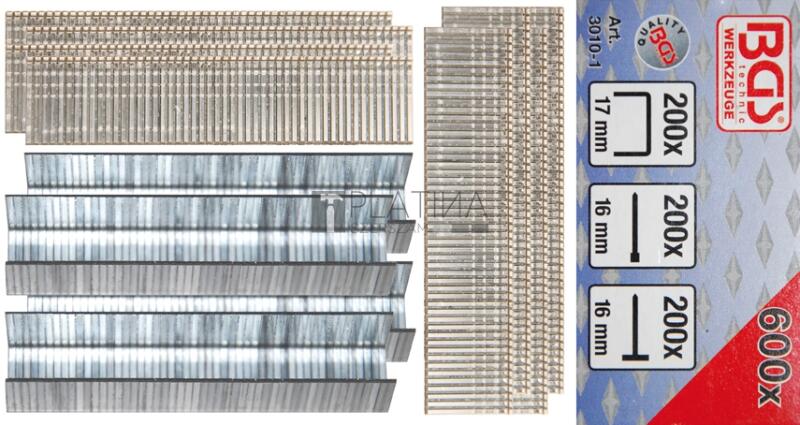 Angol nyelvű leírás (a magyar fordítást lásd lejjebb):suitable for professional staple gun BGS 3010includes the following tools:200 staples, 17 mm long200 bolts, 16 mm long200 nails, 16 mm longMagyar fordítás (fordító automata segítségével):alkalmas a professzionális vágópisztoly BGS 3010-heza következő eszközöket tartalmazza:200 tűzés, 17 mm hosszú200 csavar, 16 mm hosszú2