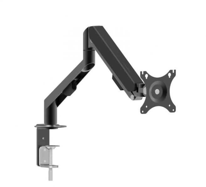 Univerzális asztali monitor tartó HS-B0044Állítható magasságú asztali monitortartó (még kisebb TV-khez is), dőlésszöggel, oldalirányú és 360°-os képernyőforgatással. Ajánlott 17" és 27" (43 cm és 68 cm) képátlójú, 2 kg és 6,5 kg közötti súlyú készülékekhez. VESA szabvány (szerelőfuratok távolsága) 75x75 mm és 100x100 mm között. Univerzális beállításokA
