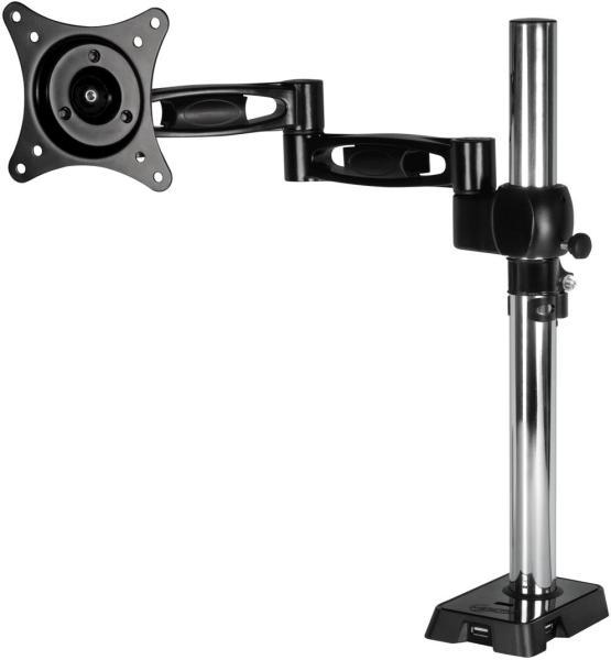 6 kg teherbírással rendelkező, 180°-ban forgatható, +/- 90°-ban dönthető asztali monitor állvány. Állítható magasság: min 9cm, max 41 cm Karhossz: 43,3cm-től 50,7cm-ig VESA: 75x75, 100x100 Forgatható: +/-180° Dönthető: +/-90° Teherbírás: 6kg