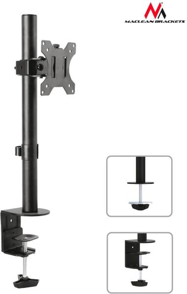 MC-751monitor tartó asztali elhelyezéssel Univerzálisasztali tartó a monitor biztonságos és megbízható rögzítéséhez. Ajánlott átmérő: 13" - 32" (33 cm - 81 cm). A tartó lehetőséget kínál azoldalra fordításra, a magasság beállítására és a dőlésre. A 8 kg teherbírású acélszerkezet készen áll a monitor felszerelésére a 75x75 mm és 100x100 mm VESA szabványokkal