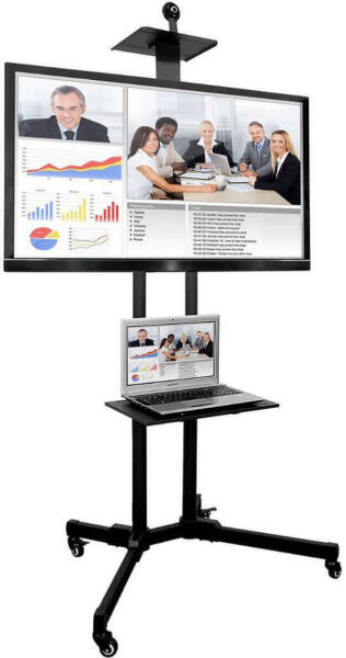 Műszaki adatok: - Multifunkcionális állvány, fékezhető görgőkkel - Állítható magasság - Extra polc egyéb eszközök számára (Laptop) - Felső projektor/kamera tartó tálca (konferenciahívásokhoz) - A rögzítő- és összeszerelési elemeket tartalmazza - Acélból készült - Fekete színű - Súly: 13 kg - Magasság: 178 cm - Szélesség: 66 cm - Döntésszög +10° és -10° k