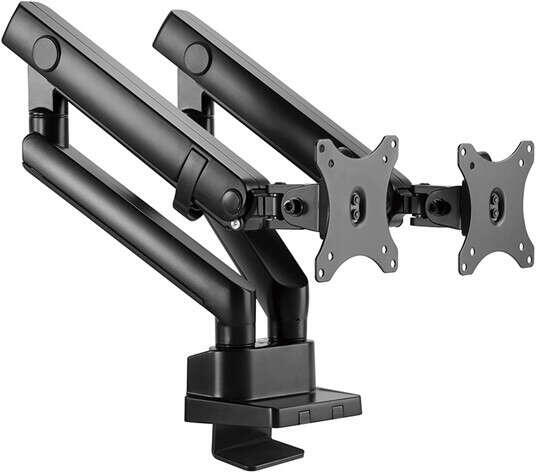 dual monitortartó fekete színű anyaga: acél / alumínium leesés elleni védelemDual monitortartó Min. képernyő átmérő: 13" Max. képernyő átmérő: 32" Dőlés: +/-90° Elfordítás: +/-90° Forgatás: +/-90° A TV tájolása: landscape/portré Rögzítés: peremre/nyílásba Üzemi terhelés: 2x 1 - 8 kg VESA 75x75 VESA 100x100 Szín: Fekete Anyag: Acél / Alumínium "Biztosíték" k