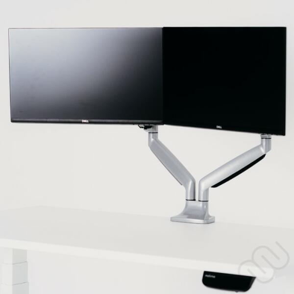 Monitor tartó konzol- Könnyen mozgatható, gázrugós konzolok - Maximális terhelhetőség: 18 kg (9+9 kg) - A teljesen kinyújtott kar 2 x 60,5 cm - A személyre szabott, ergonomikus képernyő beállítást a konzol széles körű döntési, forgatási és forgási lehetőségei biztosítják: dőlésszög: -90° / +95°; forgatási szög: 180°; forgási szög: 360° - 2 monitorhoz Monitor t
