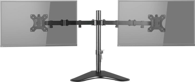 Modern asztali tartó két monitorhoz HS-P6644Állítható magasságú forgó tartó két monitorhoz (és kisebb TV-khez), dőléssel, oldalirányú forgatással és a képernyő 360°-os elforgatásával. Ajánlott 13" és 32" (33 cm és 81 cm) képátlójú, legfeljebb 16 kg súlyú készülékekhez. VESA szabvány (szerelőfuratok távolsága)75x75 és 100x100 mm között. Forgatás minden irá
