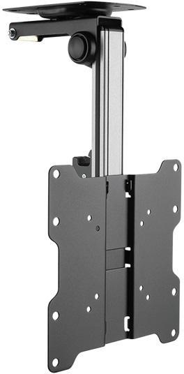 Mennyezeti állítható TV-tartó konzol single Min. képernyő átmérő: 17" Max. képernyő átmérő: 37" Dőlés: +0°/-90° Maximum teherbírás: 20 kg Szélesség: 220 mm Magasság: 265 - 400 mm Rögzítés: vízszintes vagy ferde plafon VESA 75 x75 VESA 100x100 VESA 200x100 VESA 200x200 Szín: Fekete Anyag: Acél "Biztosíték" kiiktatás ellen Típus Konzol Támogatott kijelzők mennyisé