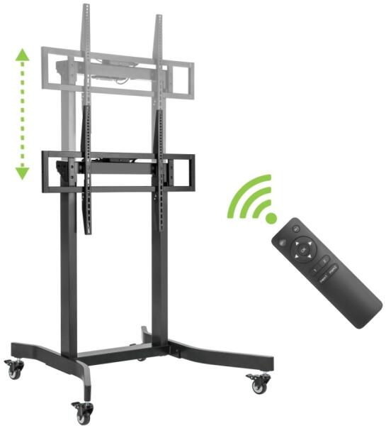 Techly ICA-TR68M motoros padlóállvány 55-100" LCD/LED kijelzőhöz Motoros magasságállítású gurulós padlóállvány LCD kijellzők számára, irodai, oktatási és vendéglátási célokra. Az ICA-TR68M sokoldalú megoldás azok számára, akik mobil és megosztott megoldást keresnek prezentációkhoz, videókonferenciákhoz és sok egyéb más feladathoz. Az erőteljes kettős motoros k