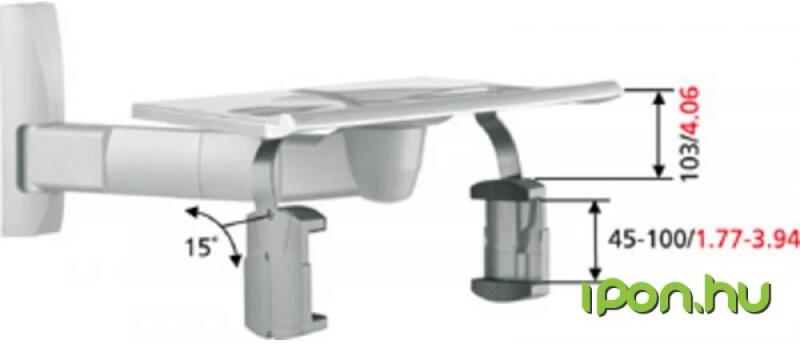 Medium Premium Fali bill. forg. tartó konzol 42""-ig Billenthető és forgatható fali konzol A képernyő billentésének mértéke legfeljebb 20° A képernyő forgatásának mértéke jobbra-balra 180°, de a nagyobb képernyők esetében valamivel kisebb lehet ez az érték Maximális terhelhetőség 30 kg Faltávolság: állítható, 100-330 mm között Furattávolság max. VESA 200x200 Kép