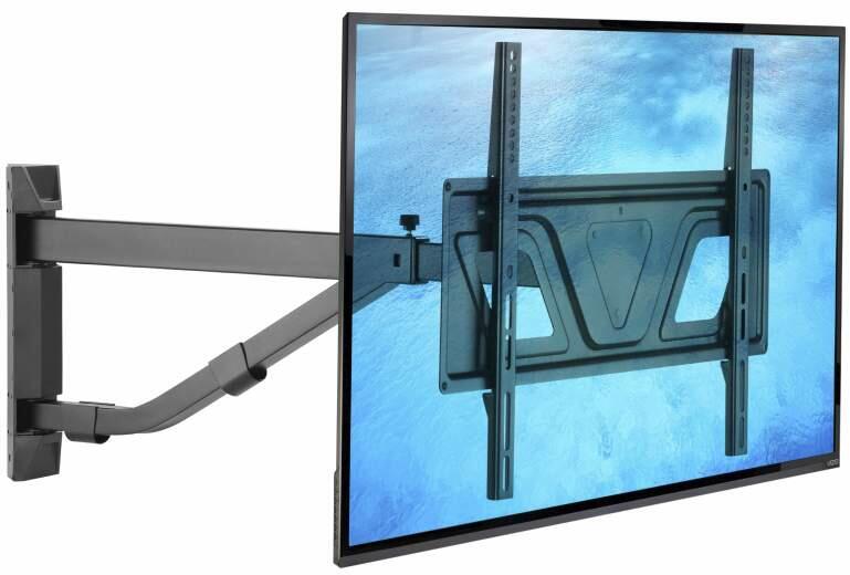 Csuklós fali tartó HS-B2301Forgatható, kétkarú TV-tartó, amely felfelé és lefelé nyitható és dönthető. 26" - 55" (66 - 169 cm) méretű TV-khez ajánlott, teherbírása 35 kg. VESA szabvány (szerelőfuratok távolsága) 200x200 és 400x400 mm között. Minden oldalra állíthatóÁllítsa a konzolt az ideális látószögbe a mozgatható kialakítással. Ez lehetővé teszi, hogy a t