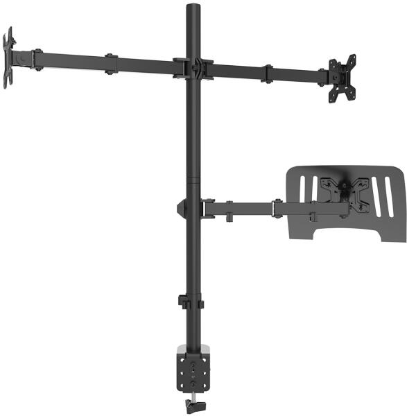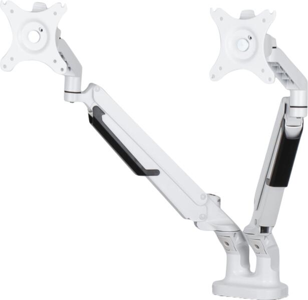 Két monitor tartó A monitortartó egy praktikus segédeszköz, amely több helyet biztosít az asztalon. VESA rögzítéssel állítható és forgatható. Egy kar terhelhetősége 9 kg-ig. 17" - 32" méretű monitorhoz. Jellemzők és funkciók Igény szerint állítható pozíció . A monitortartó helyes használata segít megelőzni az olyan problémákat, mint a hátfájás és a nyakmerevs