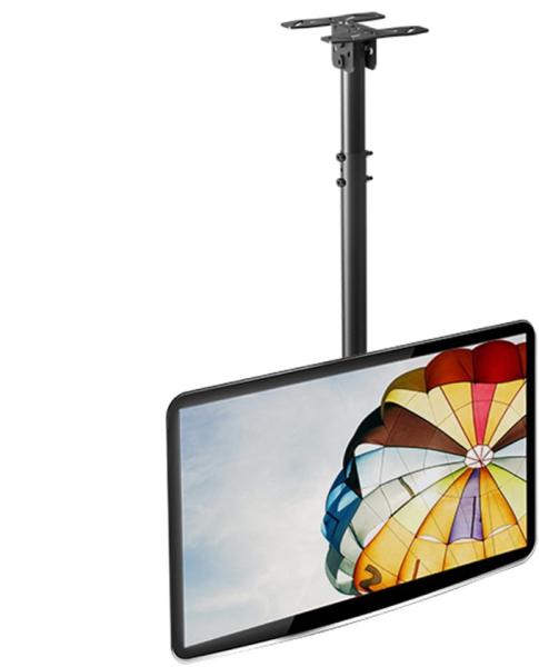 Northbayou T-560 mennyezeti televízió tartó Állítható magasságú, 68 kg terhelhetőségű, mennyezeti TV tartó 32 "- 60" -es tévékhez (81 cm-től 152 cm-ig) . A telepítés után a TV-t a mennyezettől 725 mm és 1500 mm között lehet beállítani. Lehetőség van a TV döntésére, forgatására vagy sík korrekcióra is. Természetes hozzávalója a kábelvezetési rendszer is. A konz