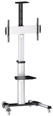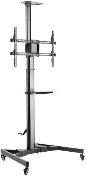 TELESCOPIC HEIGHT-ADJUSTABLE STEEL TV STAND For most 37-70 LED/LCD Flat Panel TVs DESCRIPTION This premium rolling cart has the ability to move your TV or monitor to any room in your home or office. This unit is designed to universally fit most LED, LCD, Plasma TVs and other flat panel displays from 37-70. Constructed from commercial-grade, heavy-duty steel, this rolling mount is rated with a capa
