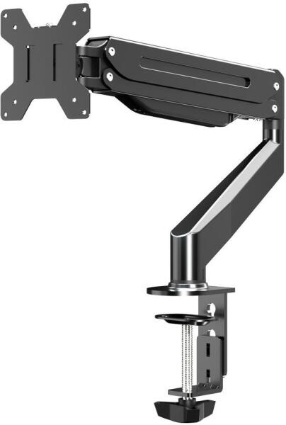 Fém, erős és stabil asztali tartó gázrugóval 17"-től 27"-ig terjedő számítógép-monitorokhoz. Lehetővé teszi a számítógép-monitor íróasztalra szerelését úgy, hogy a betekintési szögben és magasságban szabadon állítható legyen, ugyanakkor a monitor ne foglaljon helyet az asztalon. Könnyen összeszerelhető. Erős, állítható fém satuval rögzíthető az íróasztalh