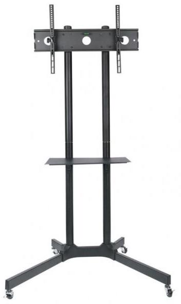 Art STO S-08A 30-65", 60KG fekete televízió asztal kerékkel A fogantyú maximális lyukak közötti távolsága: 200x200,300x200, 400x200, 300x300, 400x300, 400x400, 500x400, 600 x 400 mm VESA szabvány: Igen A fogantyú magasságának beállítása: Igen A fogantyú dőlésének beállítása: Igen, +/- 15 fok Asztal maximális terhelése: 60kg A felső polc maximális terhelése: 5 kg Asztal