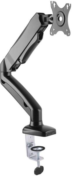 Fém, erős és stabil asztali tartó 10"-től 27"-ig terjedő számítógép-monitorokhoz. Lehetővé teszi a számítógép-monitor íróasztalra szerelését úgy, hogy a betekintési szögben és magasságban szabadon állítható legyen, ugyanakkor a monitor ne foglaljon helyet az asztalon. Könnyen összeszerelhető. Erős, állítható fém satuval rögzíthető az íróasztalhoz, puha pár