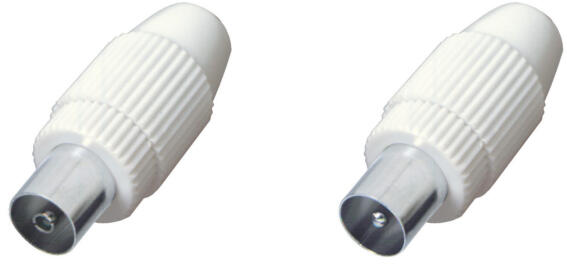 Somogyi Elektronic 1 db koax dugó + 1 db koax aljzat, műanyag (FS 1819X) Műszaki adatok: csatlakozók : koax dugó + koax aljzat ház anyaga: műanyag bekötés: csavaros bliszterben: igen