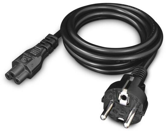 3 eres hálózati tápkábel, laptophoz és külső tápforráshoz, 1,5 m, YPC 572 A kábel kompatibilis a szabványos aljzatokkal (230 V feszültség), és készen áll a 16 A maximális áramterhelés kezelésére. A bemeneti csatlakozó
