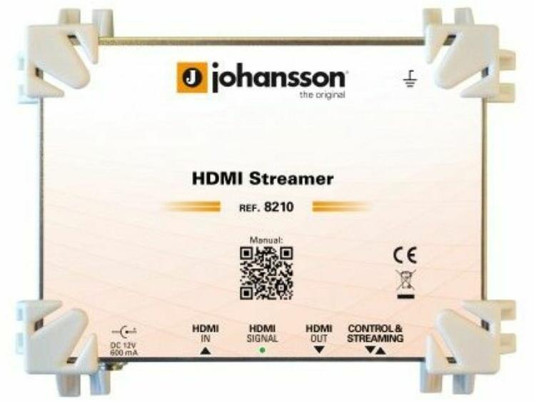 Johansson 8210 HDMI streamer A Johansson HDMI streamer univerzálisan használható, remek eszköz arra az esetre, ha bármilyen HDMI kimenettel rendelkező eszközről szeretnél jelet továbbítani helyi hálózaton vagy interneten keresztül. Főbb tulajdonságok: HDMI jelforrás továbbítása helyi hálózaton a beépített weboldal használatával (HLS unicast) HDMI jel multicast küldése I