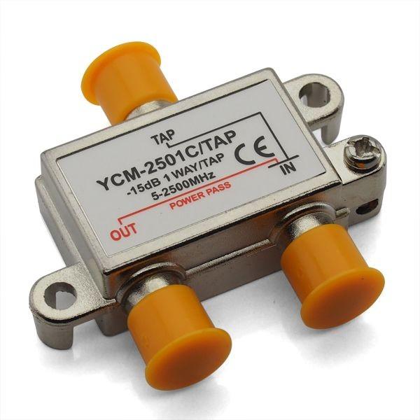Kettes tap-osztó 15dB Jellemzők: - 5-2500MHz frekvencia tartomány - Egy irányból tápfeladási lehetőség -Tartozék : rögzítő csavar.