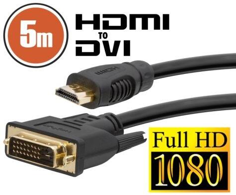 DVI-D / HDMI kábel 5 m aranyozott csatlakozóval 20382 Professzionális HDMI és DVI kábelek megkönnyítik a számítógép házi-mozi rendszerbe való integrálását. Eredetileg úgy tervezték, hogy küldje el a video jelet a