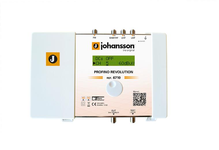 Johansson 6710 Profino Revolution programozható antennaerősítő-szűrő Főbb tulajdonságok: Telje sen automatikus, valósidejű csatornánkénti szintszabályzás (AGC) Beépített szintmérés és kontrollálás - nincs szükség mérőműszerre a beállításhoz 4 bemenet: 1 DAB/VHF - 2 UHF és 1 FM Nagy kimeneti jelszint. A Johansson Profino Revolution újdonságai: Nincs szükség térer