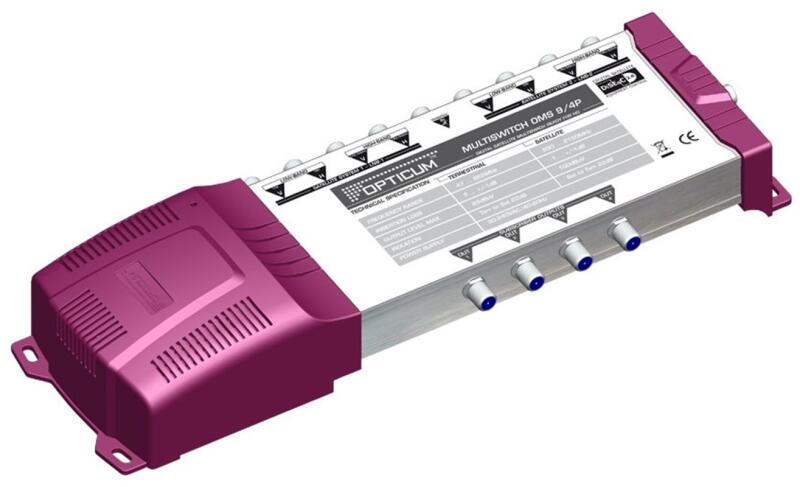 9/4P multiswitch, választható aktív vagy passzív földi bemenet, forrás Jellemzők: 9 bemenet 4 kimenet választható aktív/passzív földi bemenet beépített hálózati tápegység