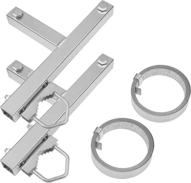 UCH0325 Műholdas kéménytartó konzol 5mKéménytartó konzol, amely egy antennaoszlop kéményre történő rögzítésére alkalmas. Erős és tartós csatlakozást biztosít. A rögzítés a kémény acélszalaggal történő körbetekerésével történik. A cinkbevonat véd az időjárási körülmények káros hatásaitól és hatékonyan megakadályozza a korróziót. A konzol lehetővé