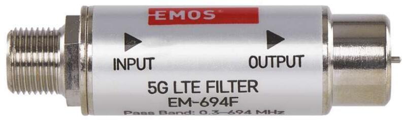 termék: 5G szűrő, bemenetek: F csatlakozók, frekvenciatartomány: 0,3–694 MHz, csatlakozók: F csatlakozó, bemenetek száma: 1, kimenetek száma: 1, elnyomott sáv: 700–2 400 MHz, csillapítás az elnyomott sávban: >40 dB, előerősítők egyenáramú tápellátással: igen, 300 mA, védettség: IP20, méretek: 16 × 40 mm, LTE filtr, értékesítési csomagolás: 1 db, doboz, 5G szű