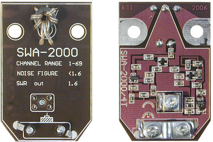 Jelerősítő széles sávú antennákhoz SWA-9701 SPECIFIKUS PARAMÉTEREK: Vevőcsatornák: 1 - 69 Erősítés: 40-45 dB Zaj: 1,4 dB Bemeneti impedancia: 300 Ohm Kimeneti impedancia: 75 Ohm Teljesítmény: DC 10-15V Távolság a TV adótól: 90-180 km