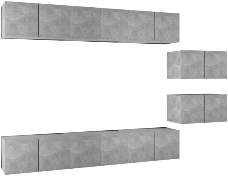 vidaXL 8 részes betonszürke forgácslap TV-szekrényszett Ez a modern kivitelezésű, tágas tárolórésszel rendelkező TV-szekrényszett nappalija középpontja lesz. Ez a függő TV-szekrényszett forgácslapból készült, így erős és tartós. A falra szerelhető szekrényszett időtálló kiegészítője lesz otthonának. A garnitúra számos rekesszel rendelkezik, melyek nagyszerű tá