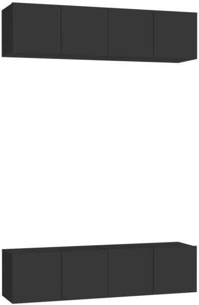 vidaXL 4 db fekete forgácslap TV-szekrény 60 x 30 x 30 cm Ez a masszív TV-szekrényszett divatos, mégis praktikus kialakításával garantáltan szobája gyöngyszeme lesz. A TV-állvány a falra rögzíthető, így időtlen kiegészítője lesz otthonának. Széles tárolórekeszei ideálisak könyvek, magazinok, DVD-k és egyéb tárgyak tárolásához. A sztereószekrény nedves ruhával k