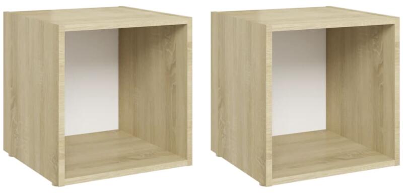 vidaXL 2 db fehér és tölgyszínű forgácslap TV-szekrény 37 x 35 x 37 cm Ez a TV-szekrényszett divatos, praktikus kialakításával garantáltan nappalija gyöngyszeme lesz. Ezek a padlón álló TV-szekrények forgácslapból készültek, így stabilak és tartósak. A rekeszüknek köszönhetően a sztereószekrények ideális helyet nyújtanak díjak, könyvek, gyűjtemények, dísztárgy