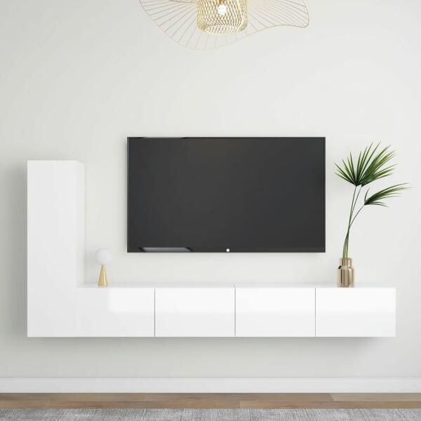 3 részes magasfényű fehér forgácslap TV-szekrényszett A különféle tárgyak elrendezésére alkalmas, bőséges tárolókapacitással ellátott függő TV-szekrényszett biztosan praktikus és szemet gyönyörködtető kiegészítője lesz otthonának. A TV-szekrény falra szerelhető, így otthona időtlen kiegészítője lesz. Ez a hifi-szekrényszett ideális olyan tárgyak elhelyezés