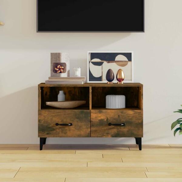 Ez a masszív TV-szekrény divatos, mégis praktikus kialakításával garantáltan szobája gyöngyszeme lesz. Masszív anyag: A szerelt fa kivételes minőségű, sima felületű, szilárd, stabil, és ellenáll a nedvességnek. A szerelt fából készült TV-szekrény könnyen tisztítható. Tágas tárolóhely: A TV-egység 2 rekesszel és 2 fiókkal rendelkezik, így ideális magazinok, DVD-k