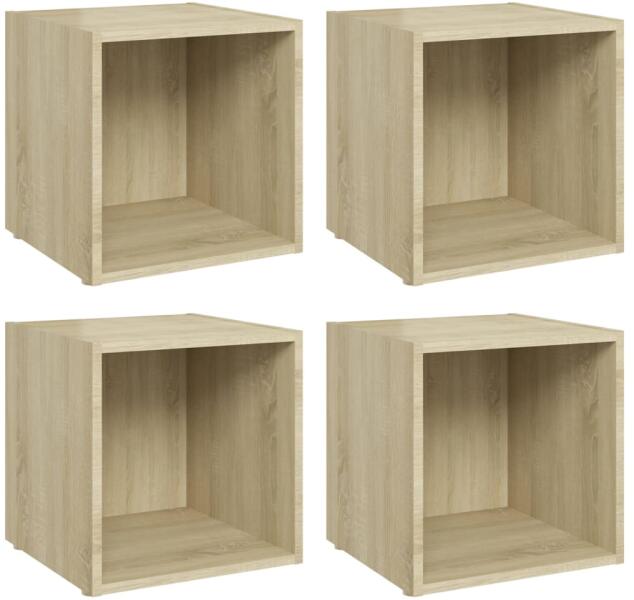 vidaXL 4 db sonoma tölgy színű forgácslap TV-szekrény 37 x 35 x 37 cm Ez a TV-szekrényszett divatos, praktikus kialakításával garantáltan nappalija gyöngyszeme lesz. Ezek a padlón álló TV-szekrények forgácslapból készültek, így stabilak és tartósak. A rekeszüknek köszönhetően a sztereószekrények ideális helyet nyújtanak díjak, könyvek, gyűjtemények, dísztárgyak