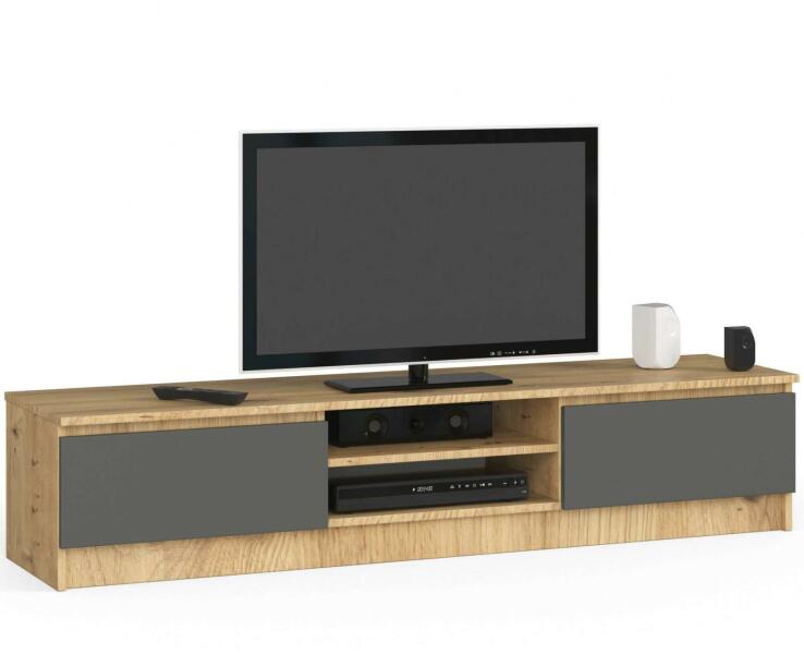 TV-szekrény 160 cm hosszú. Az rtv szekrénynek van egy polca a set top box és más av eszközök számára, valamint 2 ajtaja a legszükségesebb dolgok rendszerezésére. Modern dizájn a CLP bútorrendszerünkhöz illeszkedve. rTV szekrény a TV alatt, amit nálunk talál, ideális megoldás a nappali felszereléséhez. Üzletünkben akár 13 színmegoldást is kínálunk ehhez a bútordarabh