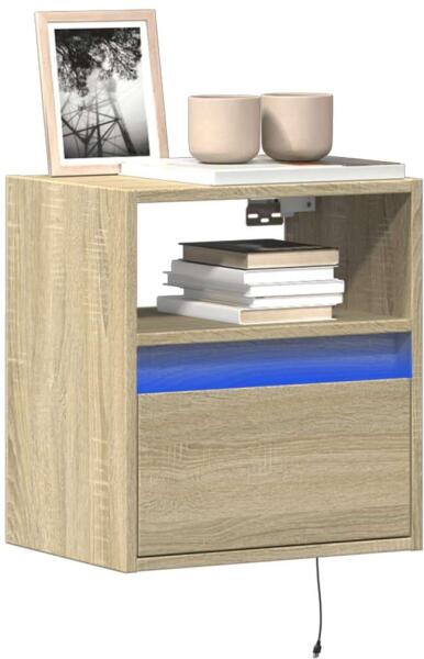 vidaXL 2 db sonoma tölgy színű fali TV-szekrény LED-del 41x31x45 cm Ezek a fali TV-szekrények tökéletesek otthonába a hely maximális kihasználására és a padló tisztán tartására. Stabil és tartós anyag: A szerelt fa tartós és stabil anyag sima felülettel, amely ellenáll a nedvességnek, a vetemedésnek és a hasadásnak, így megbízható választás különféle projektekhez
