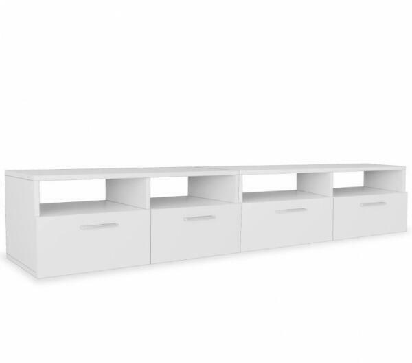 vidaXL 2 db fehér faforgácslap TV szekrény 95 x 35 x 36 cm A modern TV szekrények egyszerű, praktikus megjelenéssel rendelkeznek, így bármilyen lakberendezési stílushoz remekül illeszkednek. A HiFi szekrények faforgácslapból készültek, a sarkok pedig PVC-ből, így rendkívül stabilak és időtállók. Két nyitott polccal és két lefele nyíló szekrényajtóval rendelkeznek, me