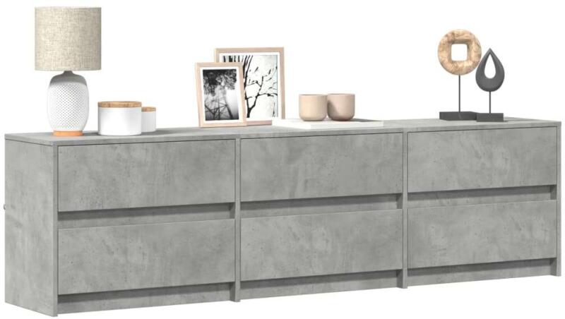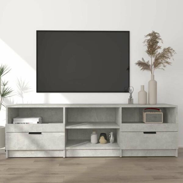 vidaXL betonszürke szerelt fa TV-szekrény 150x33,5x45 cm A divatos TV-szekrény praktikus és ideális kiegészítő egy vonzó és modern belső tér kialakításához. Prémium minőségű anyag: A szerelt fa kivételes minőségű, sima felületű, szilárd, stabil és ellenáll a nedvességnek. Bőséges tárolóhely: A sztereószekrény fiókokkal és polcokkal rendelkezik a DVD-lejátszók