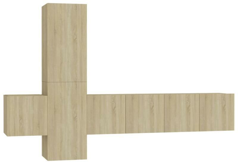 vidaXL 5 részes sonoma-tölgyszínű forgácslap TV-szekrényszett Ez a masszív TV-szekrényszett divatos, mégis praktikus kialakításával garantáltan szobája gyöngyszeme lesz. A TV-állvány a falra rögzíthető, így időtlen kiegészítője lesz otthonának. Széles tárolórekeszei ideálisak könyvek, magazinok, DVD-k és egyéb tárgyak tárolásához. A sztereószekrény nedves ruh