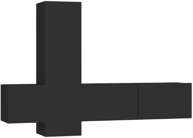 vidaXL 3 részes fekete forgácslap TV-szekrényszett Ez a masszív TV-szekrényszett divatos, mégis praktikus kialakításával garantáltan szobája gyöngyszeme lesz. A TV-állvány a falra rögzíthető, így időtlen kiegészítője lesz otthonának. Széles tárolórekeszei ideálisak könyvek, magazinok, DVD-k és egyéb tárgyak tárolásához. A sztereószekrény nedves ruhával könnyen