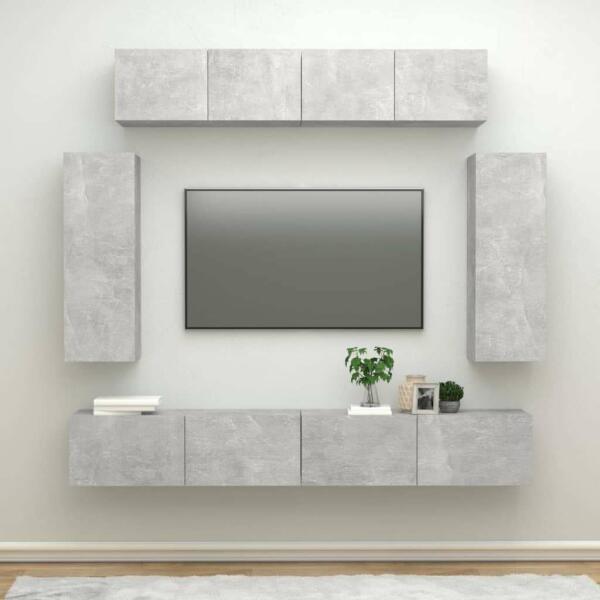 vidaXL 6 részes betonszürke szerelt fa TV-szekrényszett Ez a klasszikus TV-szekrényszett divatos és praktikus kialakításával garantáltan a szoba gyöngyszeme lesz. Erős anyag: A szerelt fa kivételes minőségű, sima felületű, szilárd, stabil, és ellenáll a nedvességnek. Bőséges tárolóhely: A TV-állvány bőséges helyet biztosít magazinjai, DVD-i és egyéb holmijai rendeze