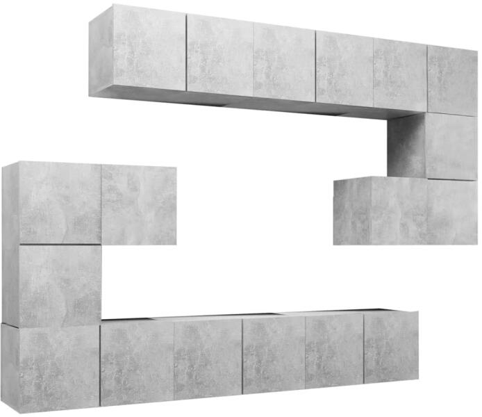 vidaXL 10 részes betonszürke forgácslap TV-szekrényszett Ez a modern kivitelezésű, tágas tárolórésszel rendelkező TV-szekrényszett nappalija középpontja lesz. Ez a függő TV-szekrényszett forgácslapból készült, így erős és tartós. A falra szerelhető szekrényszett időtálló kiegészítője lesz otthonának. A garnitúra számos rekesszel rendelkezik, melyek nagyszerű t