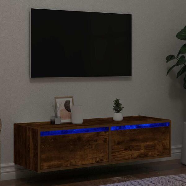 vidaXL füstös tölgy színű LED-es TV-szekrény 120 x 30 x 50 cm Ez a stílusos, mégis praktikus kialakítású LED lámpákkal ellátott TV-szekrény minden bizonnyal szobája középpontjává fog válni. Tartós anyag: A szerelt fa kivételes minőségű, sima felületű, szilárd, stabil, és ellenáll a nedvességnek. RGB LED-világítás: Ez a TV-állvány RGB LED-világítással lett el