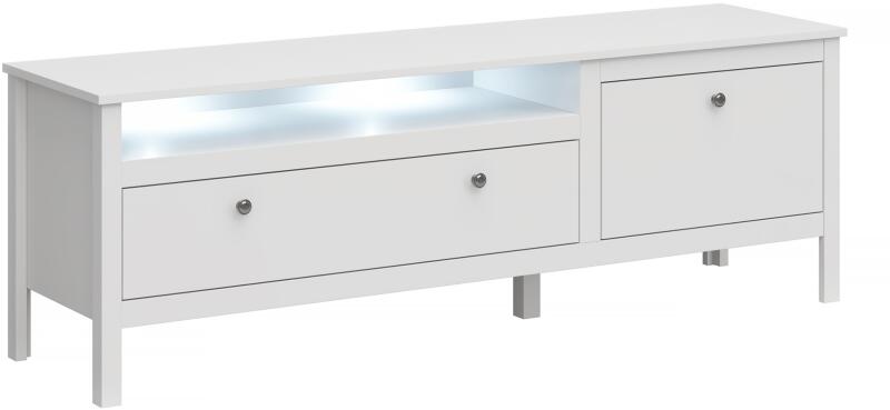"Anyag: laminált DTD/ABS élek/MDF Szín: fehér Méretek(SzxMéxMa): 160x42x54,5 cm Lábak magassága: 16 cm Anyag vastagsága: 1,6 cm Egy billentős szekrény Egy fiók Nyitott tárhely Nyitott tárhely magassága: 10 cm LED világítás nélkül LED világítás hozzávásárolható MDF ajtók Szétszerelve szállítva "