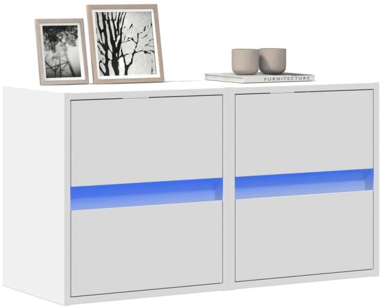 vidaXL 2 db fehér falra szerelhető TV-szekrény LED-del 41 x 31 x 45 cm Ezek a fali TV-szekrények tökéletesek otthonába a hely maximális kihasználására és a padló tisztán tartására. Stabil és tartós anyag: A szerelt fa tartós és stabil anyag sima felülettel, amely ellenáll a nedvességnek, a vetemedésnek és a hasadásnak, így megbízható választás különféle projektekh