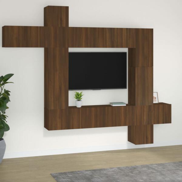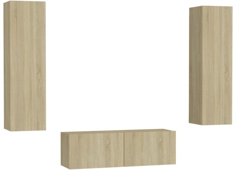 vidaXL 3 részes sonoma-tölgyszínű forgácslap TV-szekrényszett Ez a masszív TV-szekrényszett divatos, mégis praktikus kialakításával garantáltan szobája gyöngyszeme lesz. A TV-állvány a falra rögzíthető, így időtlen kiegészítője lesz otthonának. Széles tárolórekeszei ideálisak könyvek, magazinok, DVD-k és egyéb tárgyak tárolásához. A sztereószekrény nedves ruh
