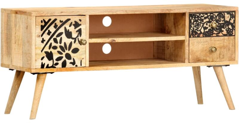vidaXL tömör mangófa TV-szekrény 100 x 30 x 45 cm Ez a tömör mangófából készült TV-állvány tökéletesen illik a tévéjéhez, és így a médiaberendezések kulturált elhelyezése is megoldódhat. Ez a TV-szekrény tömör mangófából készült, így szilárd, stabil, strapabíró és gyönyörű, a kézműves munka pedig még inkább hozzájárul a látványos retró stílushoz.