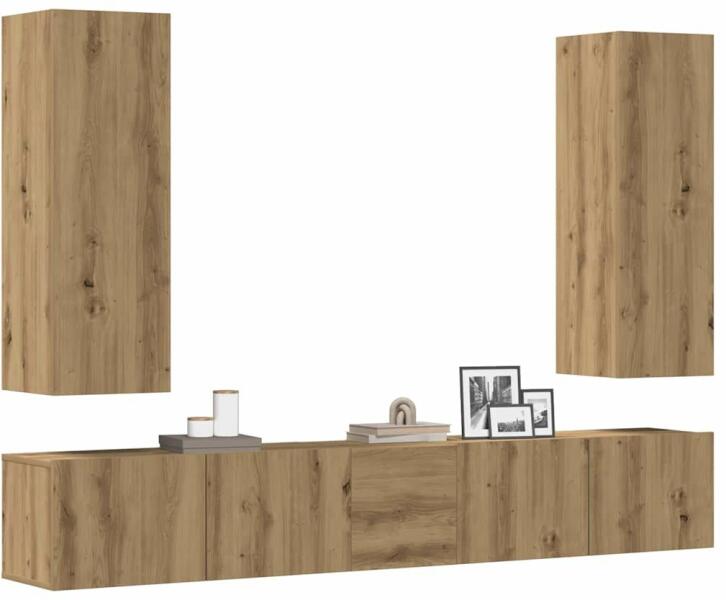Ez a klasszikus TV-szekrényszett divatos és praktikus kialakításával garantáltan a szoba gyöngyszeme lesz. Stabil és tartós anyag: A szerelt fa tartós és stabil anyag sima felülettel, amely ellenáll a nedvességnek, a vetemedésnek és a hasadásnak, így megbízható választás különféle célokhoz. Bőséges tárolóhely: Ez a TV-szekrény bőséges helyet kínál folyóiratai, k