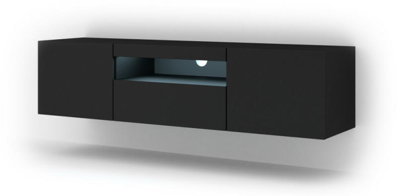Rendkívül elegáns és stílusos bútoraink exkluzív megjelenést kölcsönöznek lakásának. A felhasznált anyagok magas minősége mellett, a divatos és modern színeknek, formáknak köszönhetően mindenkit lenyűgöz stílusával. Bútorainkkal varázslatos otthont teremt, ahol kivételes élmény az eltöltött idő. Aura 150 Univerzális TV-szekrény, Matt Fekete színben, led világ