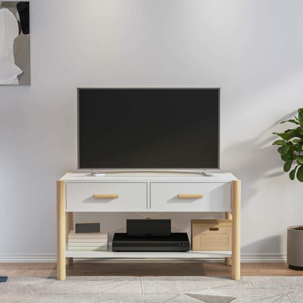 Ez a klasszikus TV-szekrény otthona praktikus és szemet gyönyörködtető kiegészítője lesz. Erős anyag: A szerelt fa kivételes minőségű, sima felületű, szilárd, stabil, és ellenáll a nedvességnek. Bőséges tárolóhely: A TV-szekrény 2 rekesszel és polcokkal rendelkezik a DVD-lejátszók, játékkonzolok, streaming-eszközök és médiahordozók kézközelben történő rendez